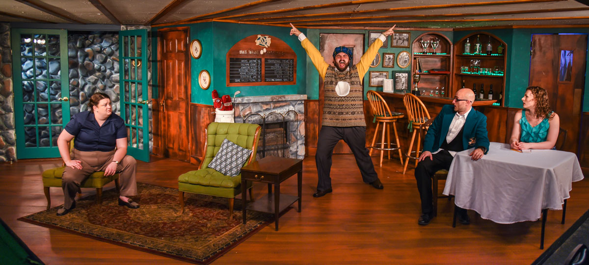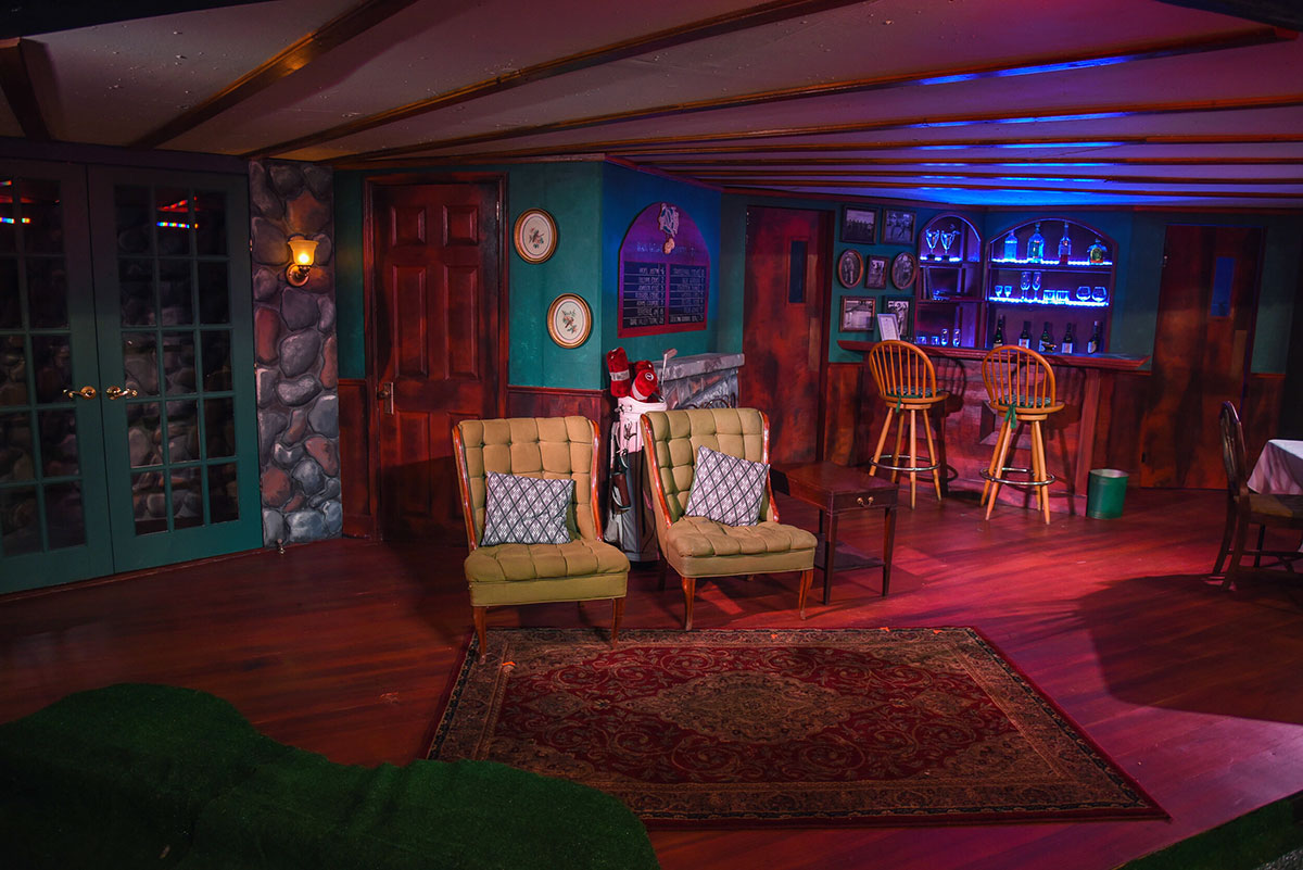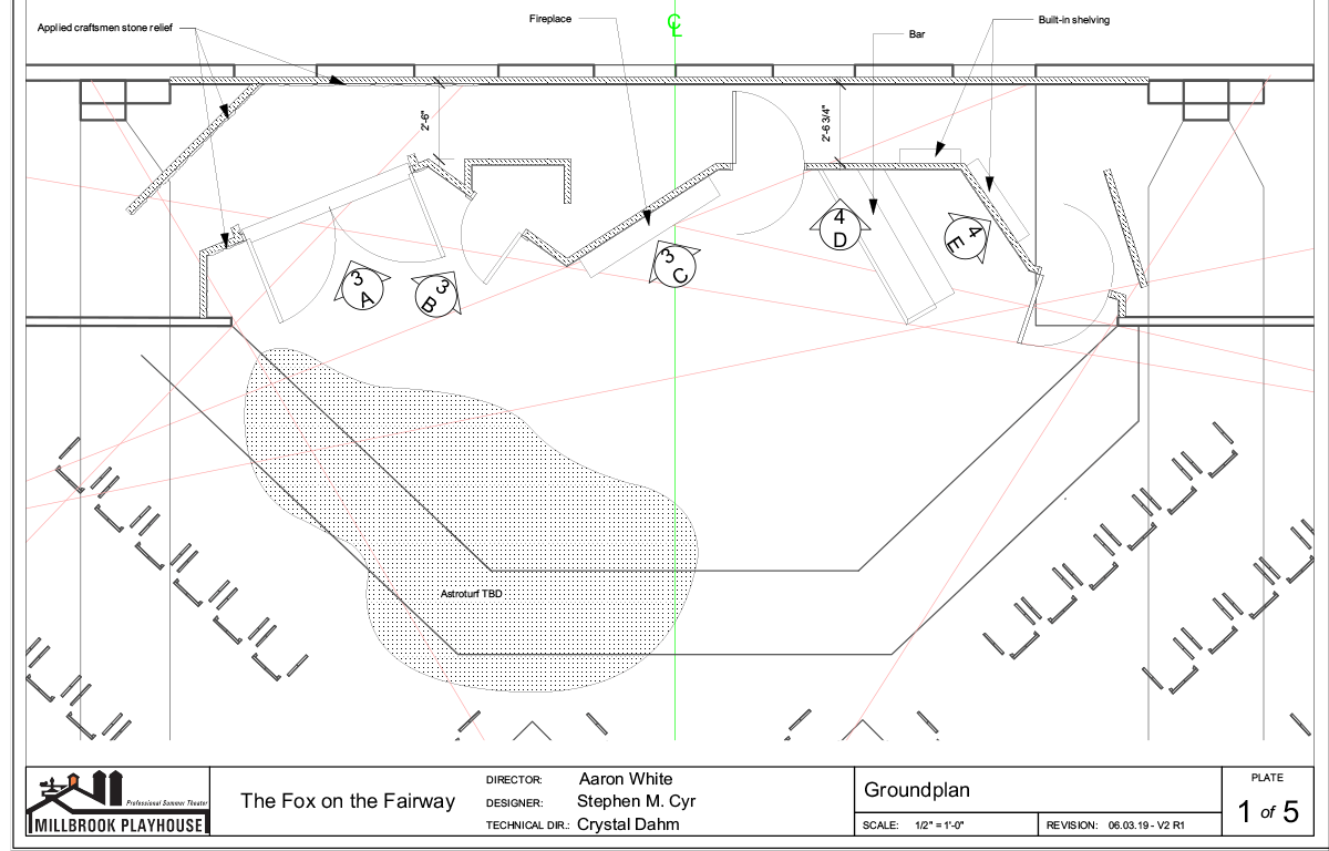 Often a play, and a director, call for realism, to which I oblige. There was still much I could influence, and I wanted to set up the right pretense for this farce. While the play takes place in what could be described as not the richest of club houses, there was something louche about the characters it represented, even in a dated, desperate way. I alluded to the dynamism in bold, specific strokes. While staying away from an abundance of competing naturalistic textures or opulence, I kept the design simple and wanting. I instead focused on the main elements of wood, stone, and my “brand” color, amping their vibrancy and dimension, matching the energy of the characters.