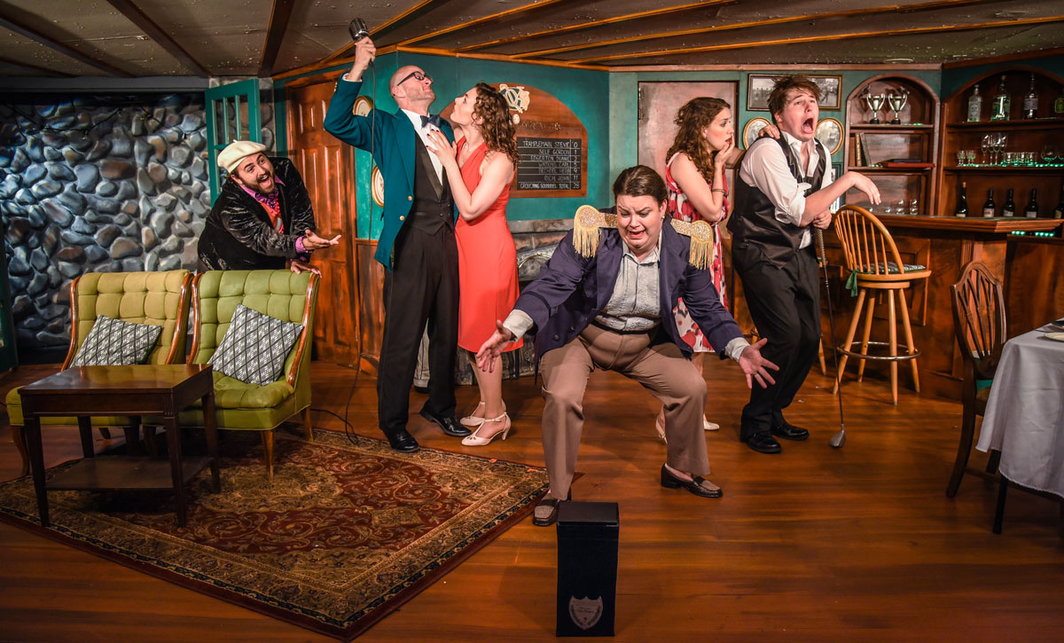 I found that small adjustments to the space went a long way. I needed to create not only several off-stage locations, but discrete locales within the unit set as well. Jutting architecture, like a wall corner or a bar, into the space just enough to break up the room, but not too much to hinder the constant running, actually helped the precarious whirlwind movement of the farce.