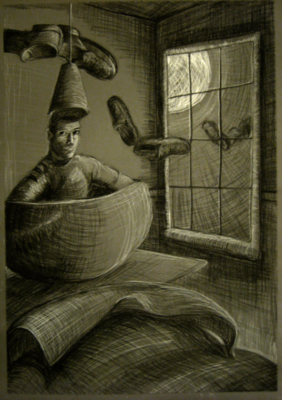 Drawing sketch self portrait. Chalk and graphite on paper.