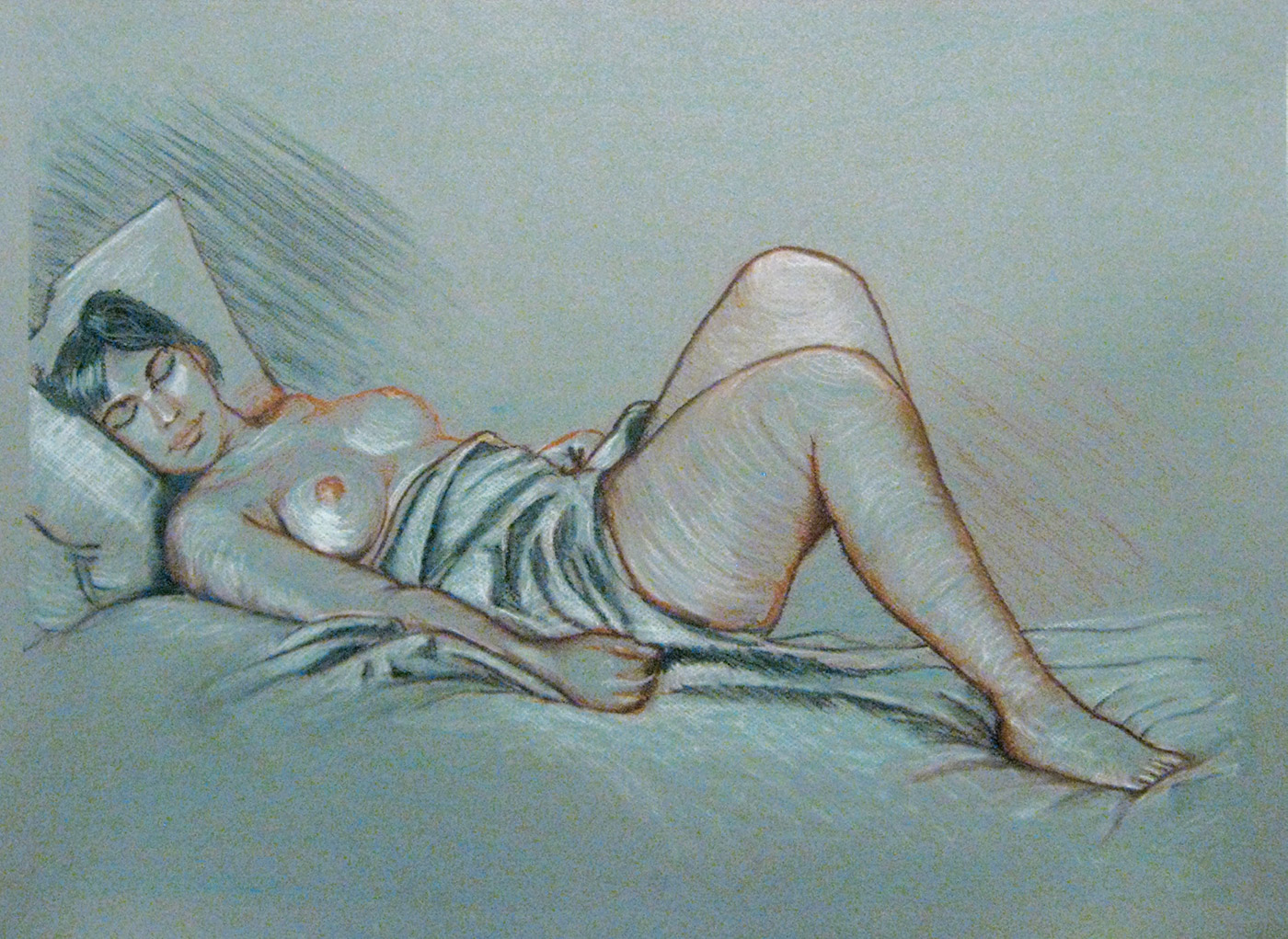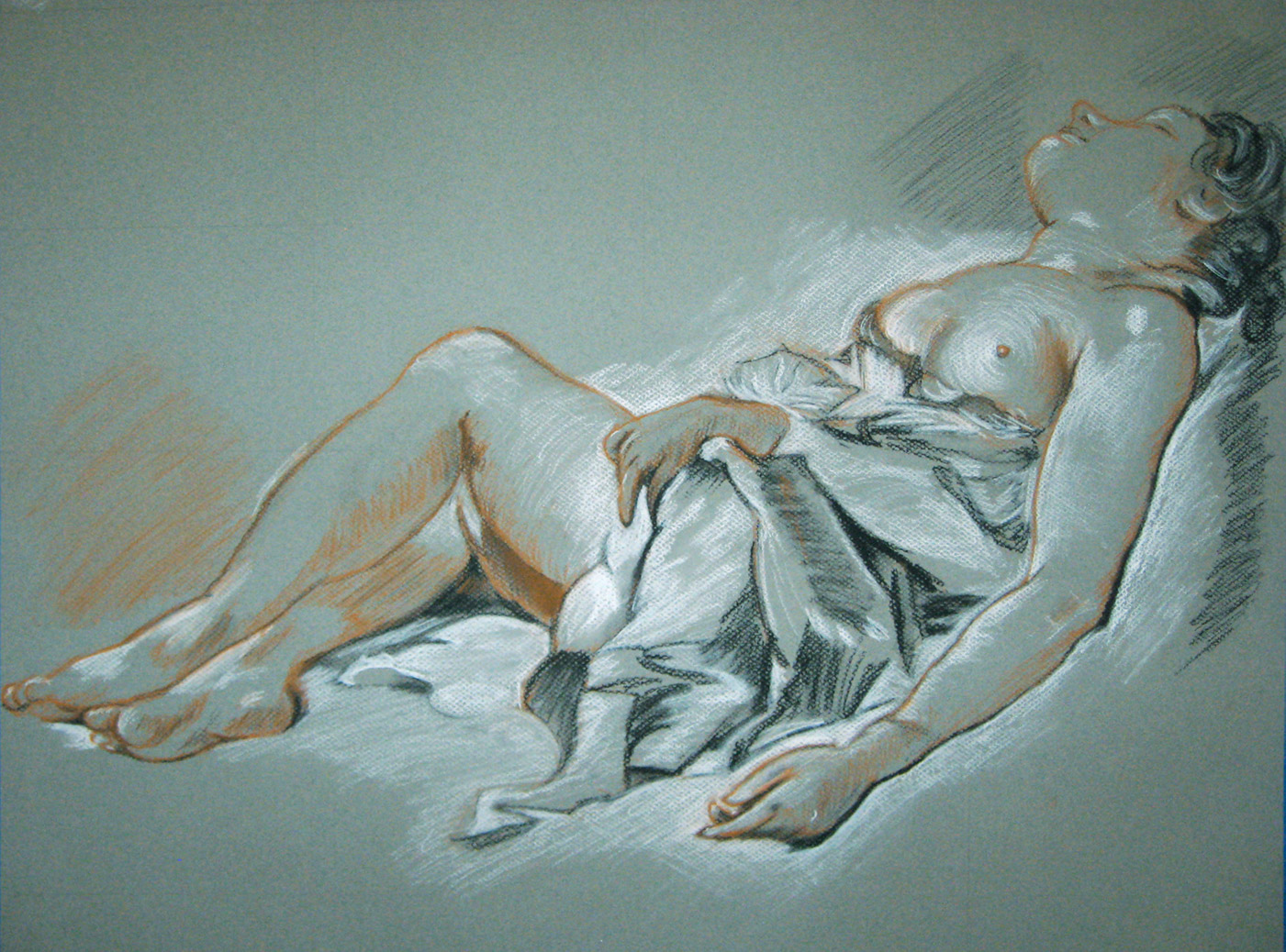 Drawing sketch based on Boucher's The Sleeping Girl. Chalk and graphite on paper.