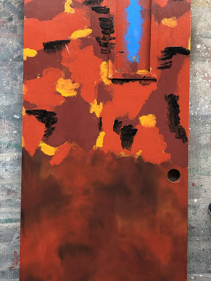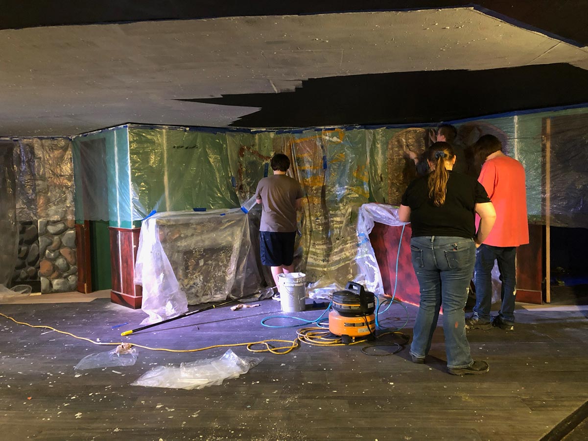 Midway through load in, as the ceiling is being painted to encapsulate the space